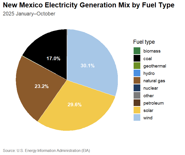 New Mexico, in aggregate, has already met and surpassed its 2025 goal as the state generated nearly 60% of its electricity from renewable resources during the first 10 months of 2025.